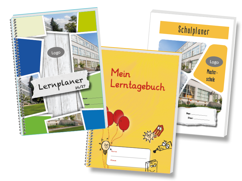 Gestalten Sie selbst oder wählen Sie aus unseren umfangreichen Vorlagen aus. So werden Ihre Hefte so individuell wie Ihre Schule.