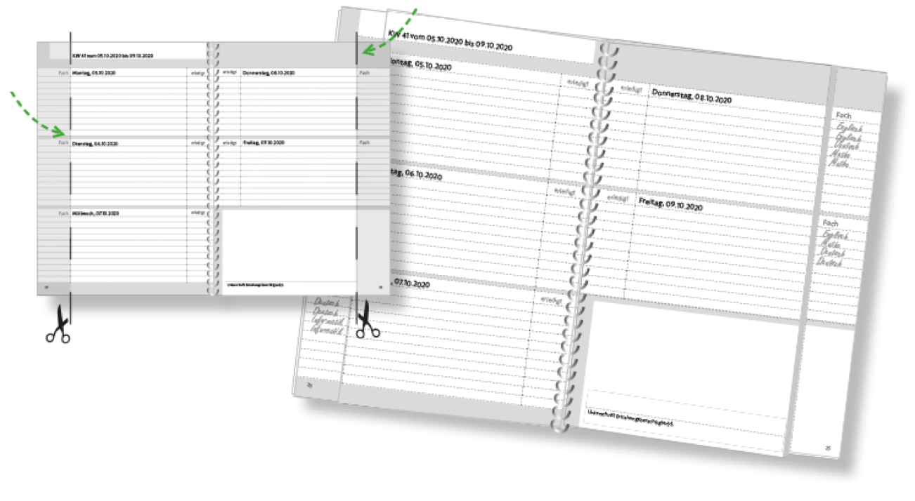 Den Stundenplan nur einmal vortragen und das ganze Jahr griffbereit! Auf Wunsch liefern wir Ihre Planer mit einem gekürzten Seitenrand.