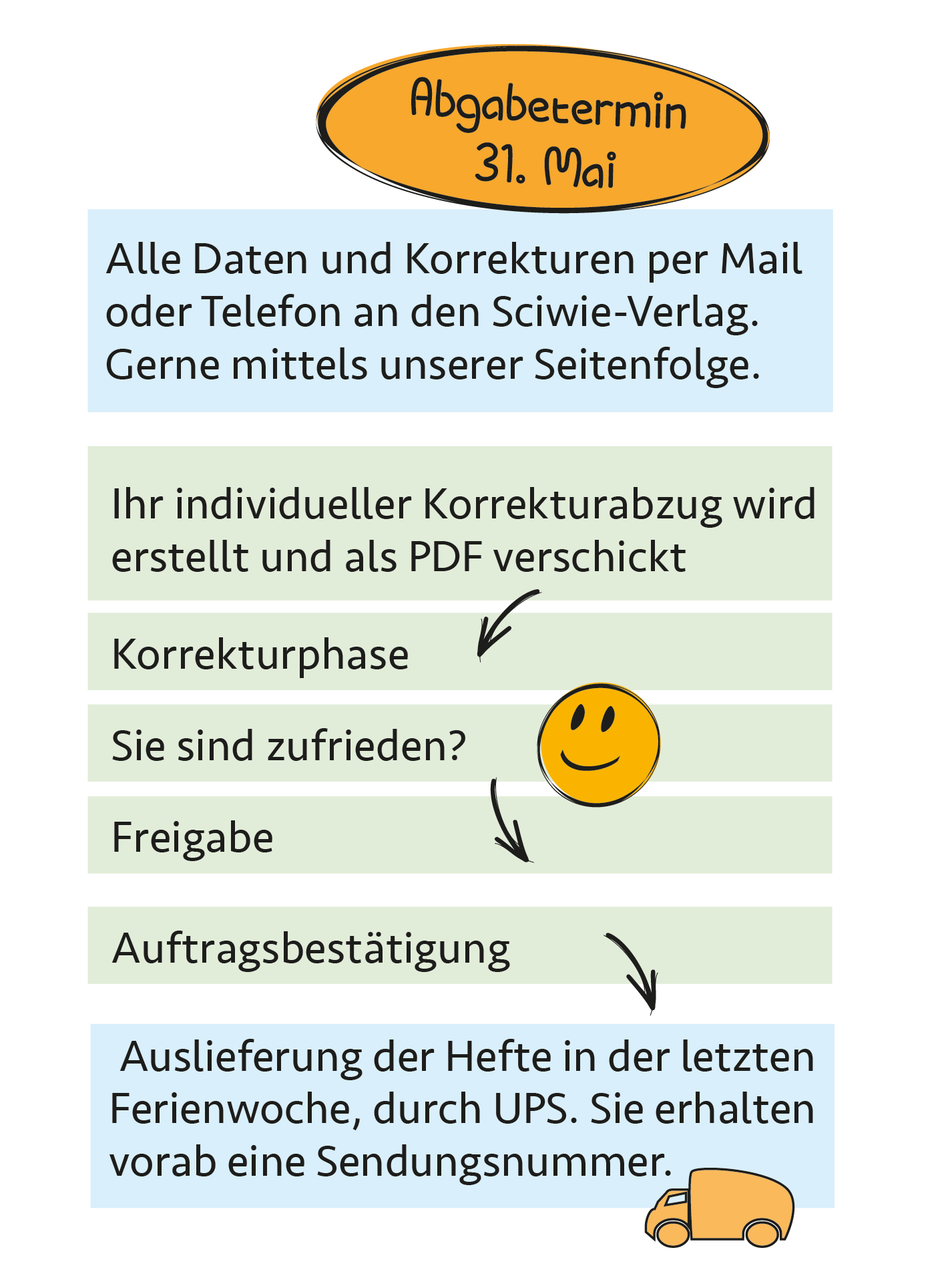 Besondere Abschnitte oder auch ein komplett eigenes Heft für Ihre Schulanfänger oder Abgänger stellen wir gerne für Sie zusammen. Auch dieser Service ist bereits in unseren Preisen enthalten.